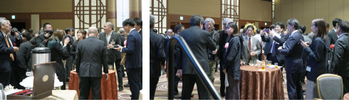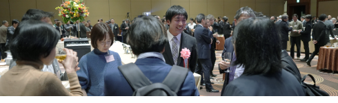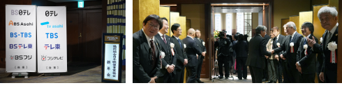 新年会に先立ち、「ヤング映像クリエーターを励ます賞」「地方局賞」「学生作品賞」表彰式では受賞者の紹介を挟み、組合員その他マスコミ関係者約500名にご参加いただいた祝宴は約2時間にわたり行われました。